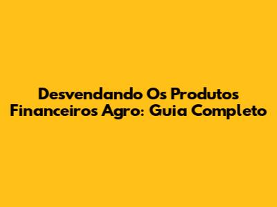 Desvendando Os Produtos Financeiros Agro: Guia Completo