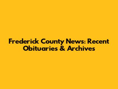 Frederick County News: Recent Obituaries & Archives
