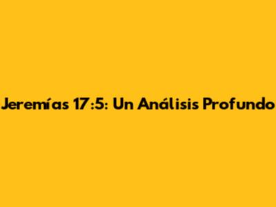 Jeremías 17:5: Un Análisis Profundo