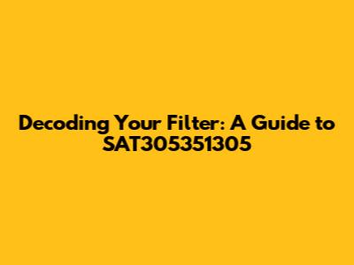 Alright, let's get down to the nitty-gritty and talk about the SAT305351305. This seemingly random string of letters and numbers is actually a crucial piece of information. Typically, it refers to a specific model or type of filter. It's like a serial number or a product identifier. Think of it as the fingerprint of your filter. This code helps manufacturers, distributors, and technicians identify the exact specifications of the filter. Knowing the SAT305351305 is essential when you need a replacement or when you're looking for information about its performance characteristics. This code is your key to accessing all the relevant details about your filter. The SAT305351305 code helps you to make sure you get the right filter the first time. It prevents costly mistakes and ensures compatibility with your system. We will explore how to identify and locate this all-important code on your filter. This way, you can easily access the information you need. We'll also break down some common filter jargon, so you can speak the language of filters. So, let’s dig a little deeper into this. The SAT305351305 is more than just a code; it's a gateway to understanding your filter.