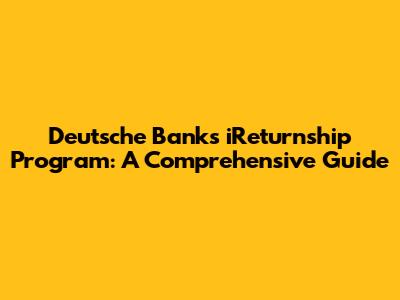Hey guys! Ever wondered about Deutsche Bank's iReturnship program? Well, you're in the right place! This program is a fantastic opportunity for professionals who've taken a career break and are looking to re-enter the workforce. It's designed to help you refresh your skills, build your network, and ultimately, land a role at one of the world's leading financial institutions. Let's dive deep and explore everything you need to know about the iReturnship program at Deutsche Bank. We'll cover what it is, who it's for, the application process, and what you can expect if you're accepted. This is your ultimate guide to navigating the Deutsche Bank iReturnship program, and trust me, it's packed with valuable insights. So, buckle up, and let's get started!