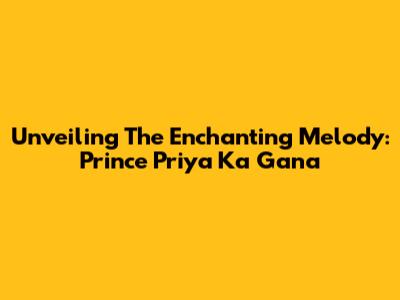 Unveiling The Enchanting Melody: Prince Priya Ka Gana