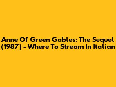 Anne Of Green Gables: The Sequel (1987) - Where To Stream In Italian