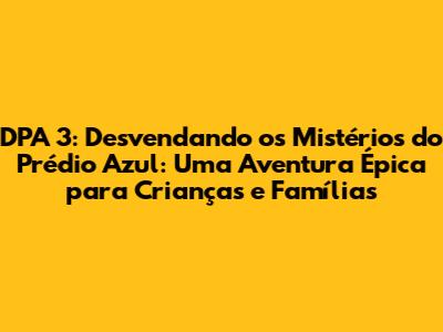 DPA 3: Detetives do Prédio Azul é um filme que merece ser visto por todos. Se você está procurando uma aventura emocionante, cheia de mistérios e diversão, este é o filme certo para você. Prepare-se para se encantar com a história, os personagens e a magia do Prédio Azul. Não perca a chance de embarcar nessa jornada inesquecível! Com sua trama envolvente, personagens cativantes e mensagem positiva, DPA 3 se tornou um clássico. É um filme que pode ser apreciado por crianças e adultos, proporcionando momentos de alegria e entretenimento para toda a família. O filme é uma excelente opção para um dia de cinema em família, oferecendo uma experiência divertida e educativa. Se você ainda não assistiu, não perca mais tempo! Reúna sua família, prepare a pipoca e divirta-se com DPA 3: Detetives do Prédio Azul - Mistério no Prédio Azul.