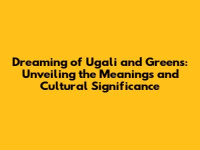 So, dreaming about ugali and greens can be an exciting journey into the heart of your subconscious mind, reflecting your core needs, cultural roots, and current circumstances. Whether it means feeling content, nurturing your relationships, or connecting to your roots, this dream has something to teach you. By exploring the symbolism and cultural significance of the dream, you can gain a deeper understanding of yourself and the life you are living. So, next time you are eating ugali and greens in your dream, embrace the experience, reflect on your feelings, and let your dream guide you. Sweet dreams, everyone! I hope you have a great day!