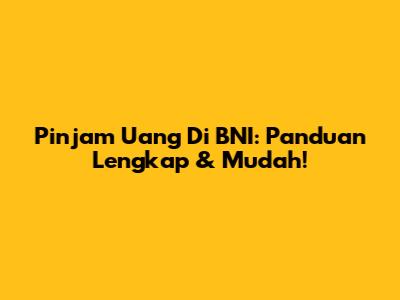 Pinjam Uang Di BNI: Panduan Lengkap & Mudah!
