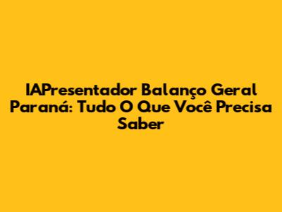 IAPresentador Balanço Geral Paraná: Tudo O Que Você Precisa Saber