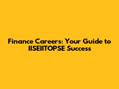 So, how do you actually make the jump from your IISEIITOPSE background into a finance career? Here are some insider tips: