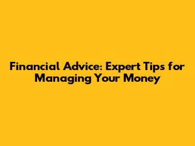 Financial Advice: Expert Tips For Managing Your Money