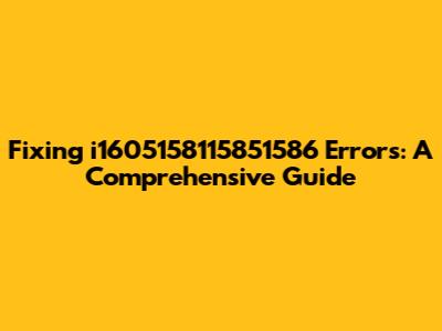 Fixing I1605158115851586 Errors: A Comprehensive Guide