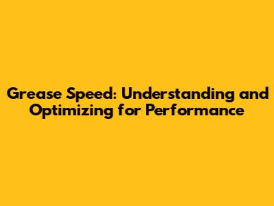 Optimizing Grease Speed for Peak Performance