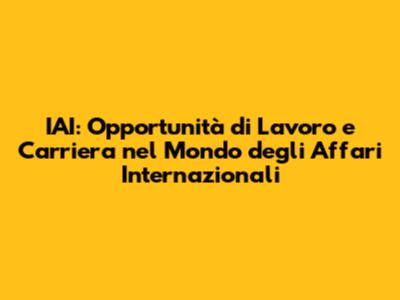 Scrivete una lettera di presentazione (cover letter) convincente, che spieghi perché siete interessati a lavorare all'IAI e perché siete il candidato ideale per la posizione. Nella lettera, mettete in evidenza le vostre motivazioni, le vostre competenze e la vostra visione del futuro. Mostrate la vostra conoscenza dell'IAI e dei suoi progetti, e spiegate come potete contribuire al successo dell'istituto. Seguite attentamente le istruzioni fornite nella descrizione della posizione per la presentazione della candidatura. Di solito, vi sarà richiesto di inviare il vostro CV e la lettera di presentazione tramite un apposito modulo online o via email. Assicuratevi di rispettare le scadenze e di inviare tutti i documenti richiesti in formato corretto. Se la vostra candidatura viene selezionata, sarete contattati per un colloquio. Preparatevi accuratamente per il colloquio, studiando l'IAI e i suoi progetti, e preparando risposte chiare e concise alle domande più comuni. Mettete in evidenza le vostre competenze, le vostre esperienze e le vostre motivazioni. Durante il colloquio, mostrate entusiasmo e passione per gli affari internazionali e per il lavoro che svolgete. Siate voi stessi, siate onesti e mostrate la vostra personalità. Dopo il colloquio, inviate una lettera di ringraziamento ai selezionatori, ringraziandoli per l'opportunità e ribadendo il vostro interesse per la posizione. Questo dimostra il vostro impegno e la vostra serietà. Ricordate, lavorare all'IAI è un obiettivo ambizioso, ma con la giusta preparazione e determinazione, potete aumentare le vostre possibilità di successo. In bocca al lupo!