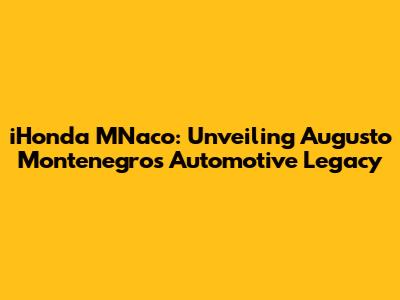 Augusto Montenegro's Legacy and the iHonda MNaco Philosophy