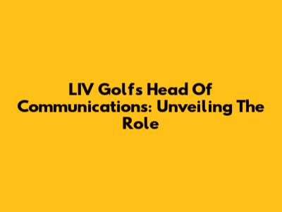 LIV Golf's Head Of Communications: Unveiling The Role