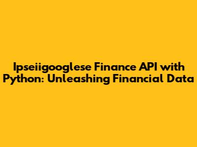 Hey there, finance enthusiasts and Python coders! Let's dive into the exciting world of financial data and how we can harness its power using the Ipseiigooglese Finance API and the versatile Python programming language. This guide will walk you through everything you need to know, from the basics to more advanced techniques, helping you build your own financial tools and applications. We'll explore how to access real-time market data, analyze stocks, and create insightful visualizations. Get ready to transform your financial analysis with the power of Python!