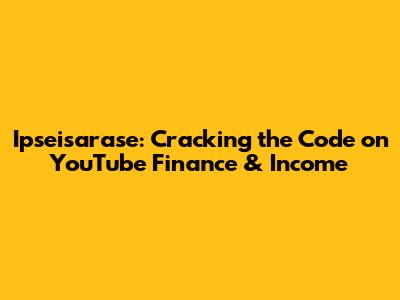 Ipseisarase: YouTube Income & Finance Secrets Unveiled