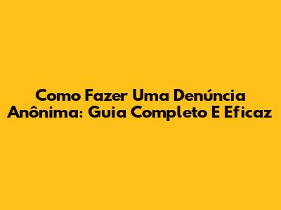 Como Fazer Uma Denúncia Anônima: Guia Completo E Eficaz