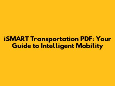 Whether you're a student, a professional, or simply someone interested in the future of transportation, diving into an iSMART Transportation PDF can provide you with valuable insights and knowledge. Happy reading, and here's to a smarter, more efficient, and sustainable future for transportation!