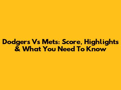 Dodgers Vs Mets: Score, Highlights & What You Need To Know