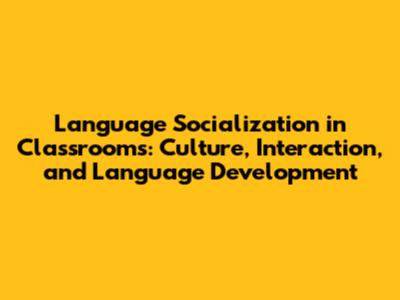 Language Socialization: Classroom Culture & Development
