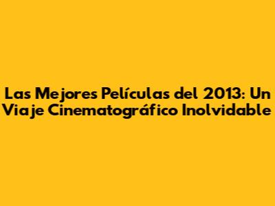 Este año cinematográfico fue increíblemente rico y diverso, con películas que abordaron una amplia gama de temas y géneros. Estas películas, junto con muchas otras, nos regalaron momentos inolvidables y nos demostraron el poder del cine para entretener, emocionar y hacernos reflexionar. ¡Anímense a explorar estas películas y a revivir la magia del cine de 2013!