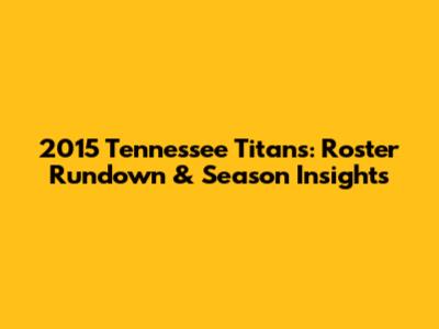 2015 Tennessee Titans: Roster Rundown & Season Insights