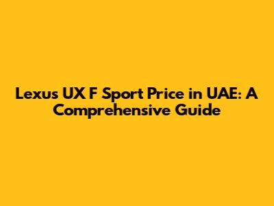 Hey guys! If you're in the market for a Lexus UX F Sport in the UAE, you've come to the right place. This comprehensive guide will walk you through everything you need to know about the price, features, and what makes this compact SUV a great choice. Let's dive right in!