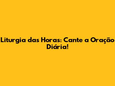 Liturgia Das Horas: Cante A Oração Diária!