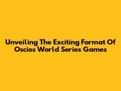 Unveiling The Exciting Format Of Oscios World Series Games