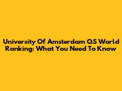 University Of Amsterdam QS World Ranking: What You Need To Know