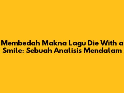 Guys, mari kita selami dunia emosional yang tersembunyi di balik lagu yang menyentuh hati, "Die With a Smile". Kalian pasti pernah mendengar lagu ini, kan? Lagu ini bukan hanya sekadar alunan melodi yang enak didengar, tapi juga mengandung makna yang mendalam tentang kehidupan, harapan, dan bagaimana kita menghadapi akhir segalanya. Dalam artikel ini, kita akan bedah makna lagu "Die With a Smile" secara komprehensif, mulai dari liriknya yang puitis hingga interpretasi yang mungkin tersembunyi di baliknya. Jadi, siapkan diri kalian untuk perjalanan yang akan membuka mata dan hati kalian!