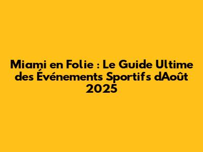 Q: Quand aura lieu les événements sportifs à Miami en août 2025 ? A: Les événements sont prévus pour le mois d'août 2025, les dates spécifiques seront annoncées prochainement.