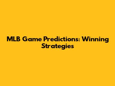 MLB Game Predictions: Winning Strategies