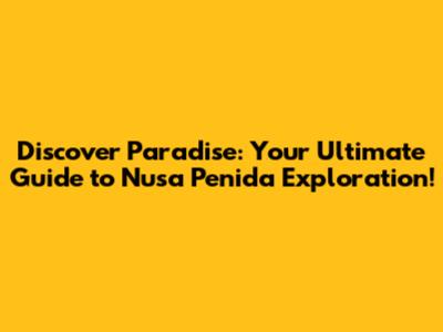 Discover Paradise: Your Ultimate Guide to Nusa Penida Exploration!