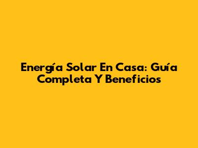 Energía Solar En Casa: Guía Completa Y Beneficios