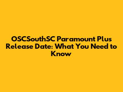 OSCSouthSC Paramount Plus Release Date: What You Need To Know