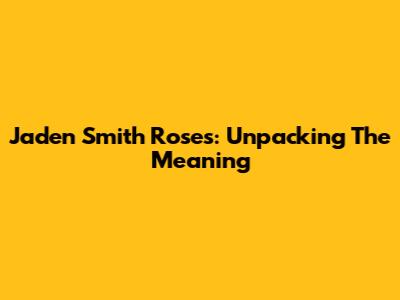 Jaden Smith Roses: Unpacking The Meaning