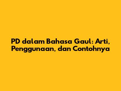 Dalam kamus bahasa gaul, PD adalah singkatan dari "percaya diri". Istilah ini digunakan untuk menggambarkan seseorang yang memiliki keyakinan kuat terhadap kemampuan dan kualitas dirinya. Orang yang PD nggak gampang minder atau insecure, dan berani tampil apa adanya. Mereka yakin bahwa mereka punya sesuatu yang berharga untuk ditawarkan kepada dunia. Percaya diri ini bisa muncul dalam berbagai aspek kehidupan, mulai dari penampilan fisik, kemampuan akademis, keterampilan dalam bekerja, hingga kepribadian secara keseluruhan. Seseorang yang PD akan merasa nyaman dengan dirinya sendiri dan nggak terlalu terpengaruh oleh perkataan atau penilaian orang lain. Mereka fokus pada kekuatan dan potensi yang mereka miliki, serta terus berusaha untuk mengembangkan diri menjadi lebih baik. Jadi, kalau kamu denger ada yang bilang "Wah, PD banget sih dia!", itu berarti orang tersebut mengagumi tingkat kepercayaan diri yang kamu miliki. Tapi, ingat ya, PD itu beda tipis sama sombong. Jadi, tetaplah rendah hati dan jangan sampai kepercayaan diri itu justru membuatmu merendahkan orang lain. Gunakan kepercayaan dirimu untuk menginspirasi dan memotivasi orang lain di sekitarmu. Karena pada dasarnya, setiap orang punya potensi untuk menjadi PD, asalkan mereka mau menerima diri sendiri apa adanya dan fokus pada pengembangan diri.