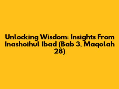 Unlocking Wisdom: Insights From Inashoihul Ibad (Bab 3, Maqolah 28)