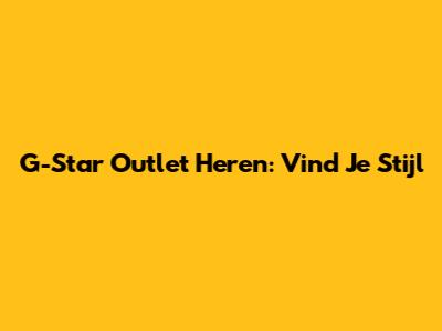 G-Star Outlet Heren: Vind Je Stijl
