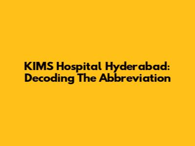 KIMS Hospital Hyderabad: Decoding The Abbreviation