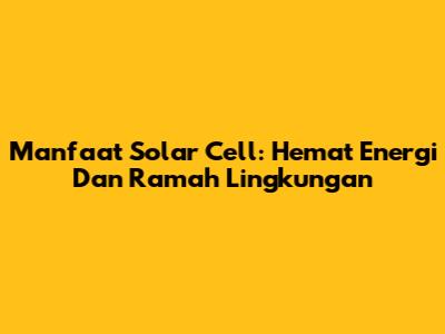 Manfaat Solar Cell: Hemat Energi Dan Ramah Lingkungan