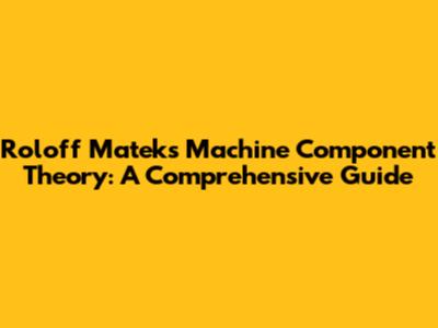 Roloff Matek's Machine Component Theory: A Comprehensive Guide