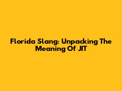 Florida Slang: Unpacking The Meaning Of "JIT"