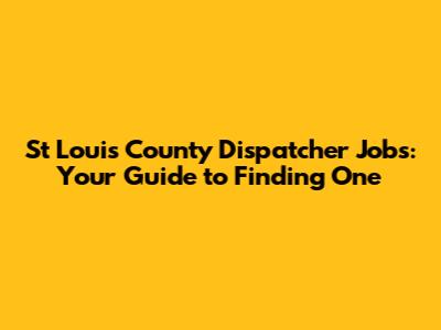 St Louis County Dispatcher Jobs: Your Guide To Finding One