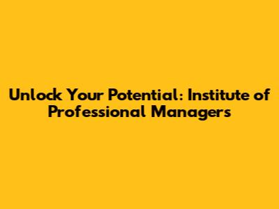 Unlock Your Potential: Institute Of Professional Managers