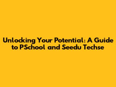 Unlocking Your Potential: A Guide To PSchool And Seedu Techse