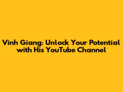 Vinh Giang: Unlock Your Potential With His YouTube Channel