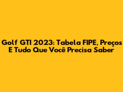 Golf GTI 2023: Tabela FIPE, Preços E Tudo Que Você Precisa Saber